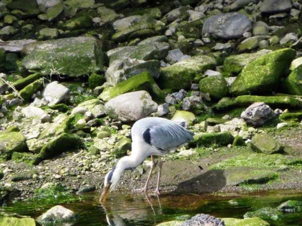 Heron fishing in a shallow pool. MC