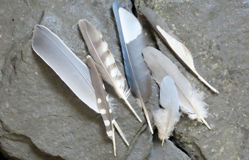 Athol called his picture of feathers against a slate background "Heavy and Light". Sandra favoured this from among Athol's Opposites.