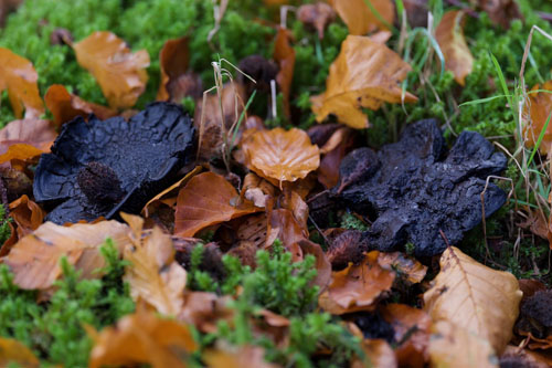 The group liked Gillian's fungi nestling among the lichen and leaves.