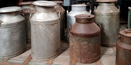 Sue chose the milk churns for the colours and texture.