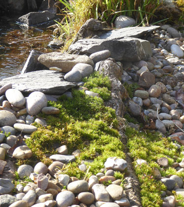 was perfect to capture the sun and shade after the dull winter weather. She was pleased with the moss beside the pond, a