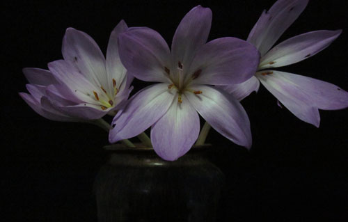 I think it's fair to say that Les enjoys still life photography. A beautiful study of autumn crocus. Lit by a lamp and making use of a tripod. Manual focus.