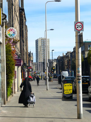 Ruth: A Sunday in Leith. Street Photography - the figure adds to the scene