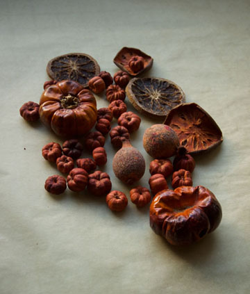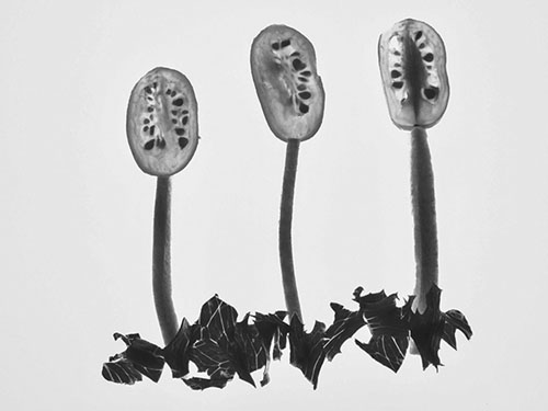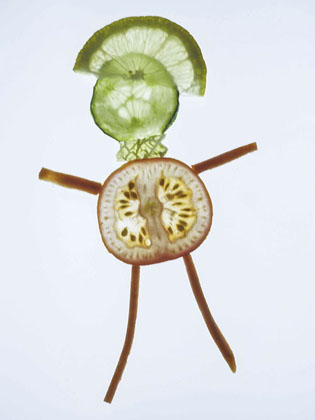 Frances used a lot if ingenuity for her pictures. They are taken using a light box, on which she arranged thinly sliced pieces of vegetables. This is "tomato head"