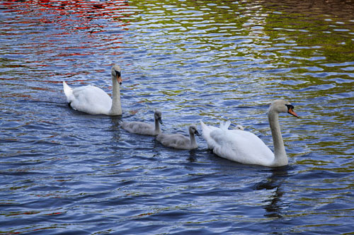 Joe himself liked this one of a family of swans because of the splash of colour top left and the composition.